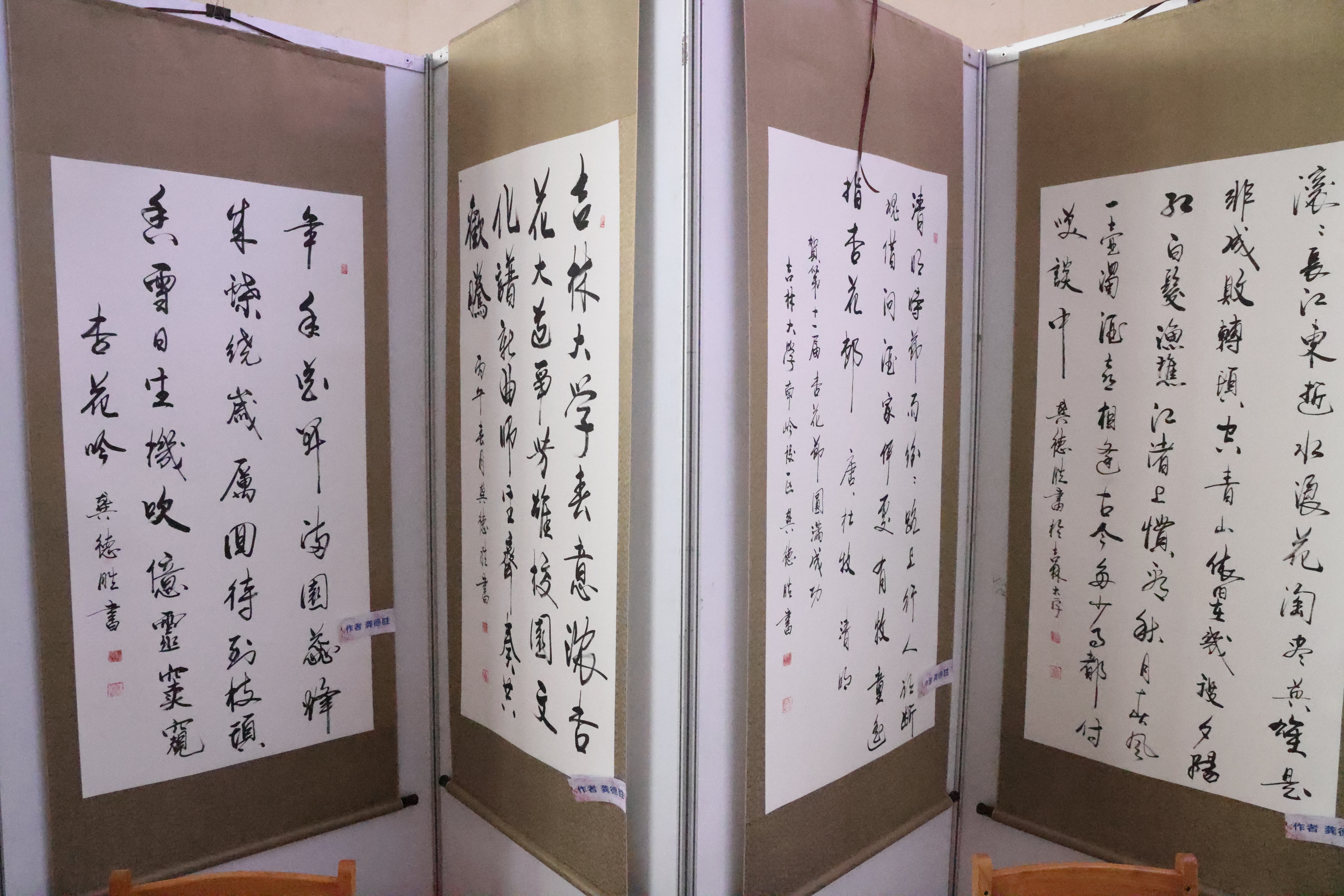 据了解,此次书画展共展出了50余件作品,包含吉大南岭校区诗歌协会离退休老师撰写的有关杏花的原创诗词和关于杏花的经典唐宋诗词,既是对杏花节的文化献礼,也是离退休老师艺术才华的一次集中展示,更是吉大精神与文化传承的生动体现。